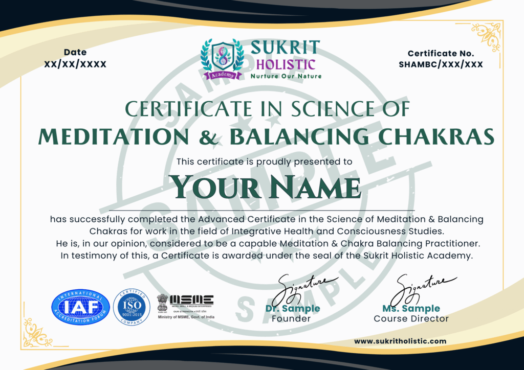 Get certified with a globally recognized Certificate in Meditation & Chakra Science.